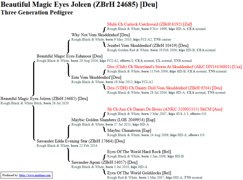 Joleen war schon immer eine aktive Hündin. Mit meiner Tochter arbeitet Sie super im Showring. Aber noch lieber ist Joleen im Mantrailing unterwegs. Daher trainieren wir dies regelmäßig. Wir werden auch sobald es die Chance gibt, Turniere im Mantrailing besuchen und Prüfungen absolvieren. Charakterlich ist Sie eine ganz liebe Hündin.